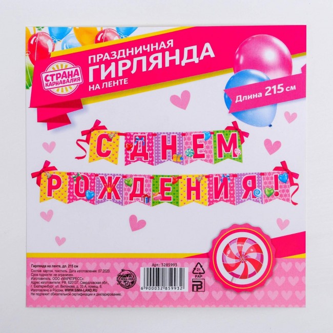 Главная / Товары для праздника / Украшения для помещения / Гирлянды, плакаты / Гирлянда, бумажные флажки на ленте «С Днем рождения!», 215см ГИРЛЯНДА, БУМАЖНЫЕ ФЛАЖКИ НА ЛЕНТЕ «С ДНЕМ РОЖДЕНИЯ!», 215СМ