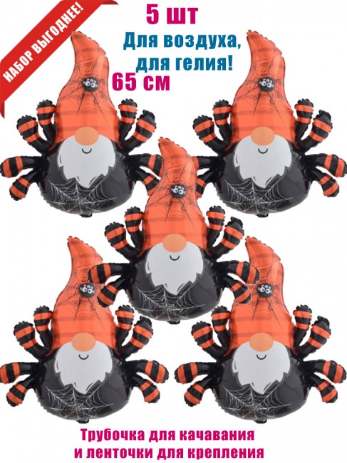 Шар фольгированный «Гном паук оранжевый», 76 см - (5шт)