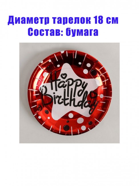 Набор бумажных тарелок «Happy Birthday. Красный блеск», 18 см (6 шт)