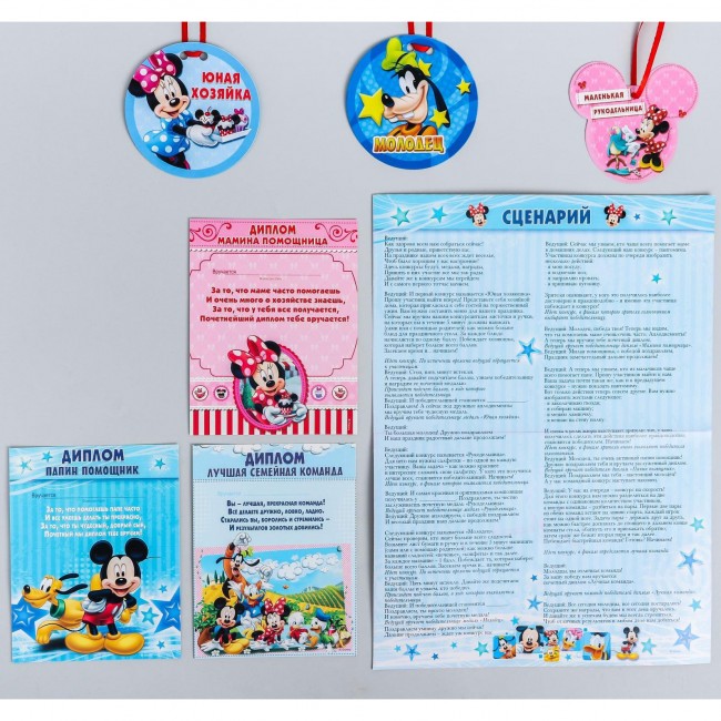 Наградной набор для праздника Микки и Минни Маус «Мама, папа, я -дружная семья!»