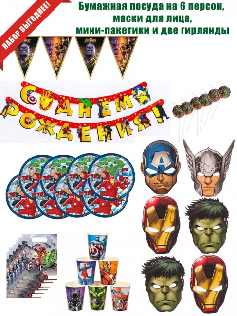 Гирлянда на люверсах «С Днем рождения!», Мстители, 240 см