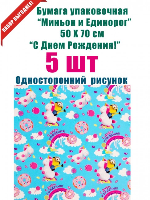 Главная / Товары для праздника / Пакеты, упаковочная бумага, декоративные ленты / Набор упаковочной бумаги «С днем рождения» Миньоны, 50х70 см, 5 шт НАБОР УПАКОВОЧНОЙ БУМАГИ «С ДНЕМ РОЖДЕНИЯ» МИНЬОНЫ, 50Х70 СМ, 5 ШТ