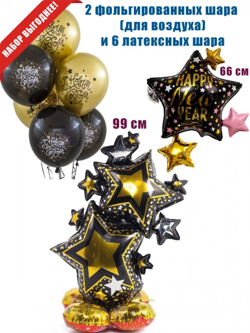 Шар для воздуха «Звезды Black Gold», 99 см - (1шт)