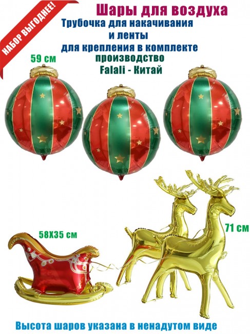 Шар для воздуха «Упряжка олени и сани» - (1шт)