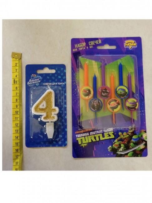 Свеча-цифра 4 и свечи «Черепашки-ниндзя»