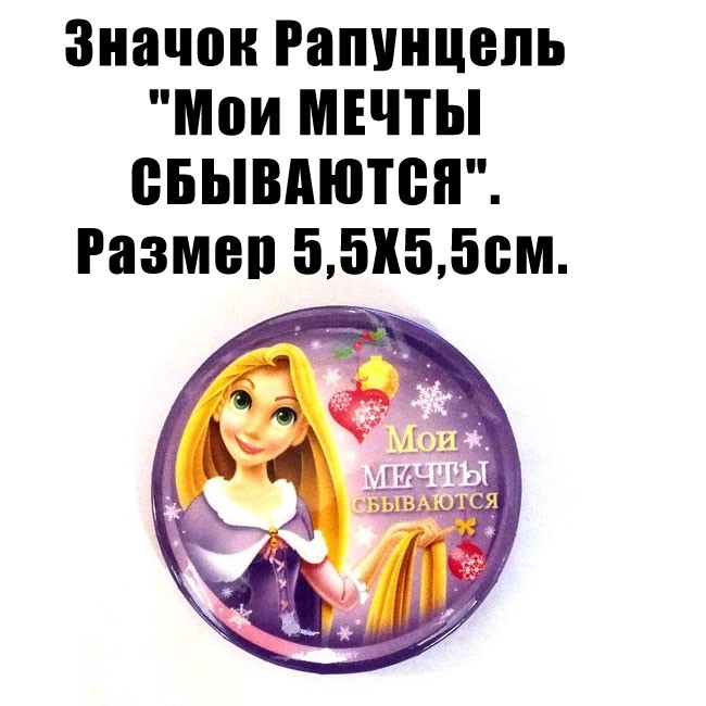 Значок Рапунцель "Мои МЕЧТЫ СБЫВАЮТСЯ".