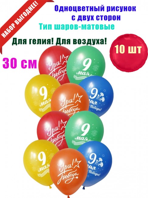 «9 Мая» шары латексные, 30 см, 10 шт
