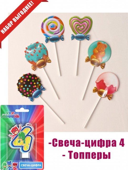 «ГЕРОИ В МАСКАХ» СВЕЧА-ЦИФРА 4 И ТОППЕРЫ