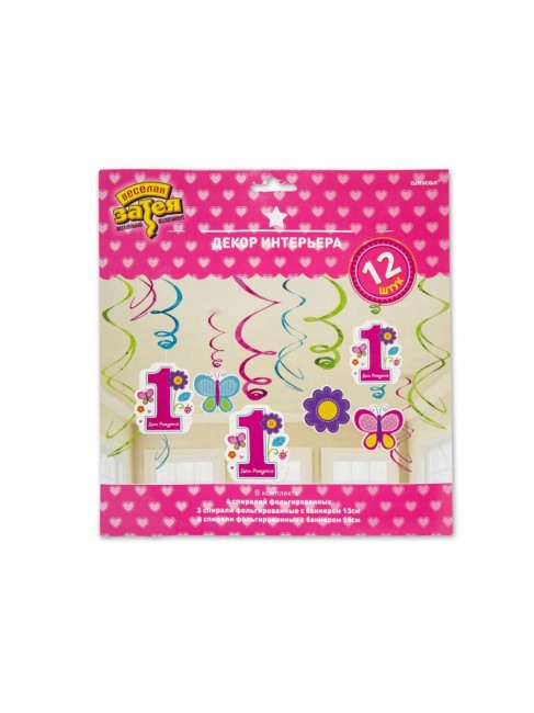 Декоративные спирали «1 Годик Девочке», 40-60 см, 12 шт