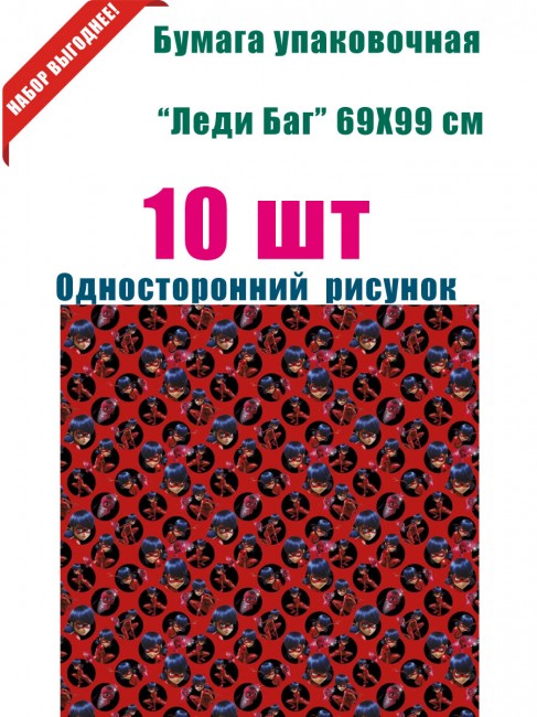 / «Леди Баг» бумага упаковочная, 69Х99см, 10 шт