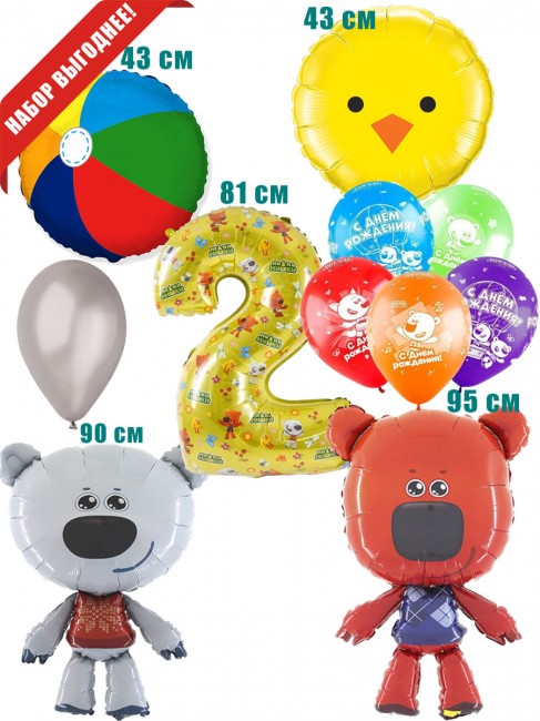 Шар-цифра «2» фольгированный, «Ми-ми-мишки», 81 см