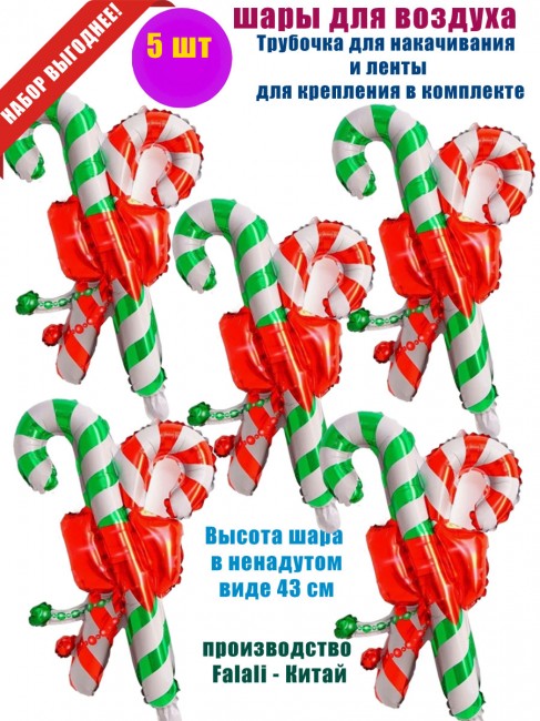 Шар для воздуха «Трости новогодние», высота 52 см - (5шт)
