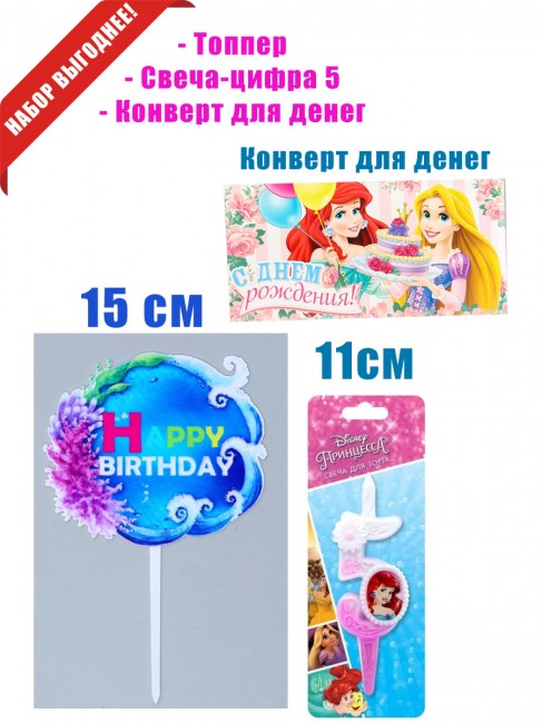 «Русалочка» свеча-цира 5, топпер, конверт