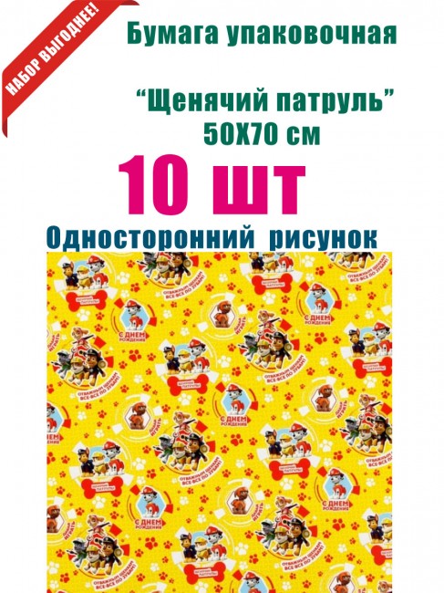 Главная / Товары для праздника / Пакеты, упаковочная бумага, декоративные ленты / «Щенячий патруль» набор упаковочной бумаги, 70Х100 см, 10 шт «ЩЕНЯЧИЙ ПАТРУЛЬ» НАБОР УПАКОВОЧНОЙ БУМАГИ, 70Х100 СМ, 10 ШТ
