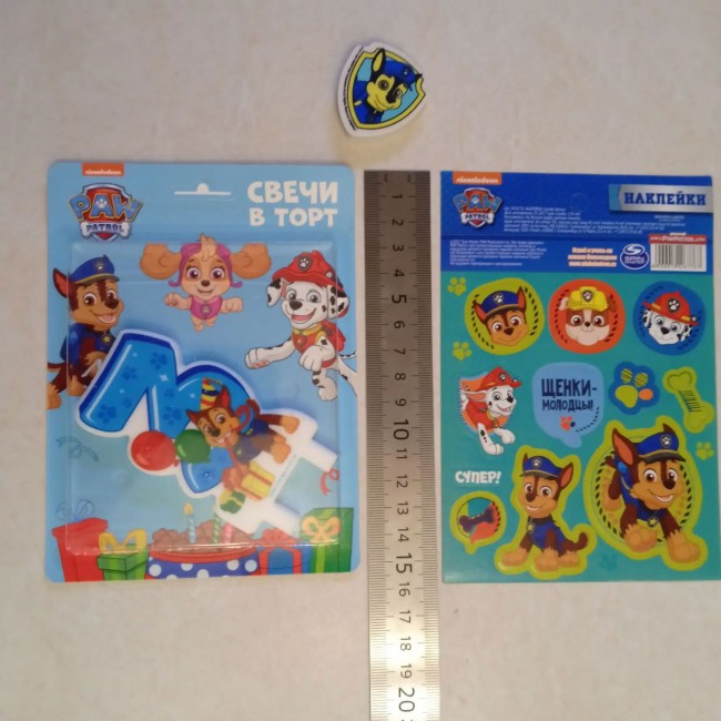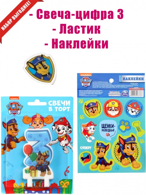 «Щенячий патруль» свеча-цифра 3, ластик, наклейка