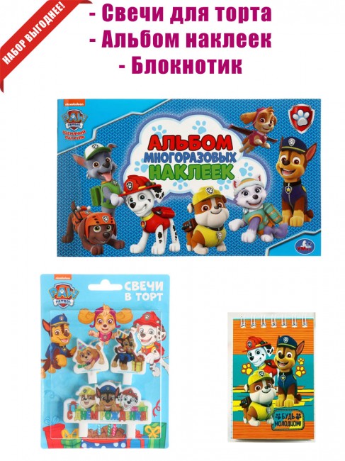 Главная / Товары для праздника / Наборы для праздника / «Щенячий патруль» свеча для торта и наклейки