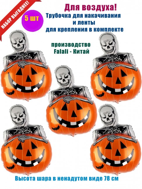 Шар фольгированный «Скелет с тыквой», высота 78 см - (5шт)