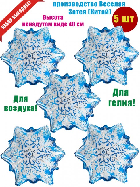 «Снежинка» шары фольгированные, 5 шт, 40 см